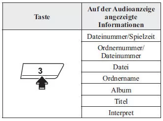 Es lassen sich jeweils nur 13 Zeichen anzeigen. Um die restlichen Zeichen eines langen Titels anzuzeigen, können Sie die Texttaste ( 3 ) drücken. Damit wird die Anzeige auf die nächsten 13 Zeichen umgeschaltet. Drücken Sie die Texttaste ( 3 ) nach der Anzeige der letzten 13 Zeichen erneut, um auf den Titelanfang zurückzuschalten.