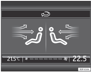 Temperaturvorwahl für die Fahrerseite 22°C und Temperaturvorwahl für die Beifahrerseite