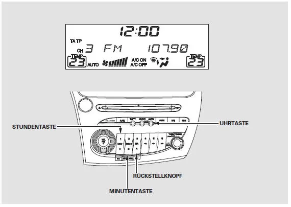 Wenn die Batterie des Fahrzeugs leer ist oder abgeklemmt wird, muss die Uhr neu eingestellt werden.