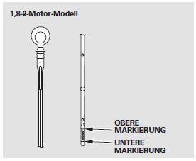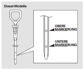 Falls er in der Nähe oder unterhalb der unteren Markierung liegt, siehe Kapitel Motoröl nachfüllen